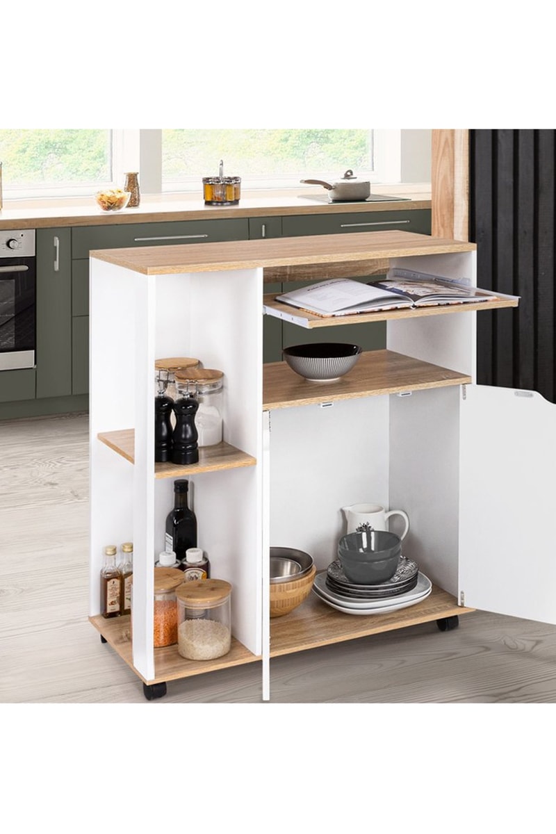 Desserte de cuisine sur roulettes - Blanc et imitation bois