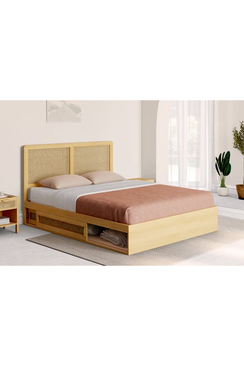 Structure : panneaux de particules, MDF et cannage