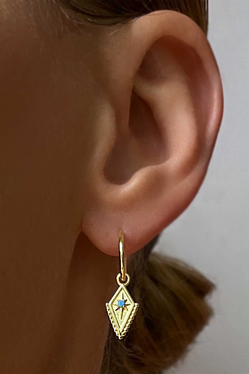 Boucles d'oreilles en argent plaqué or jaune serties d'une turquoise synthétique.