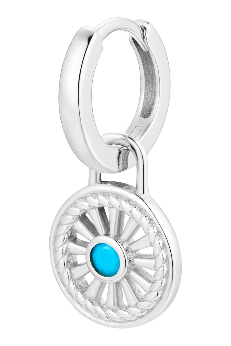 Boucle d'oreille en argent sertie d'une turquoise synthétique.
