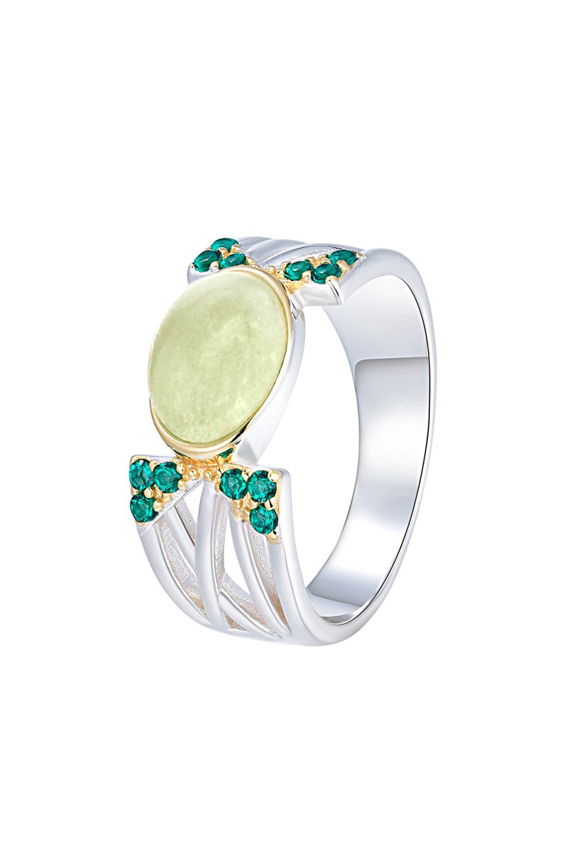 Bague - Argent, argent plaqué or jaune, quartz et émeraudes