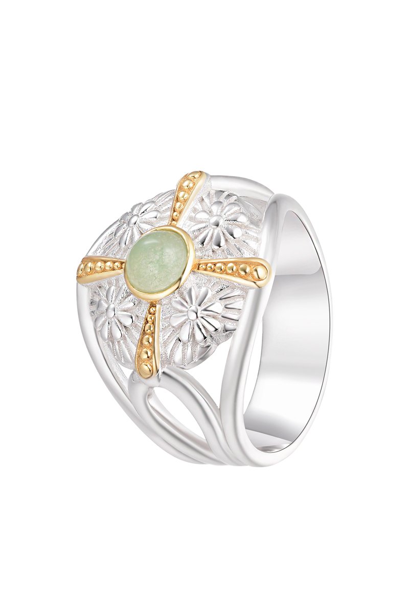 Bague - Argent, argent plaqué or jaune et quartz vert