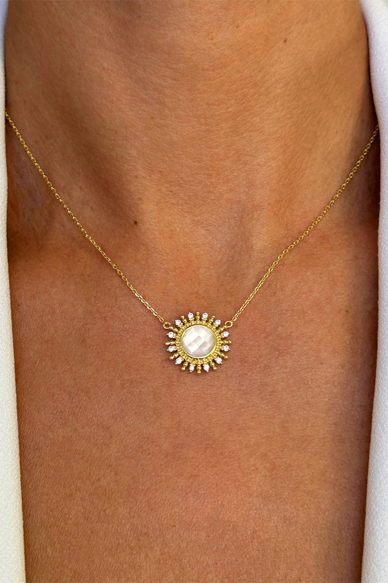 Collier - Argent plaqué or jaune et nacre