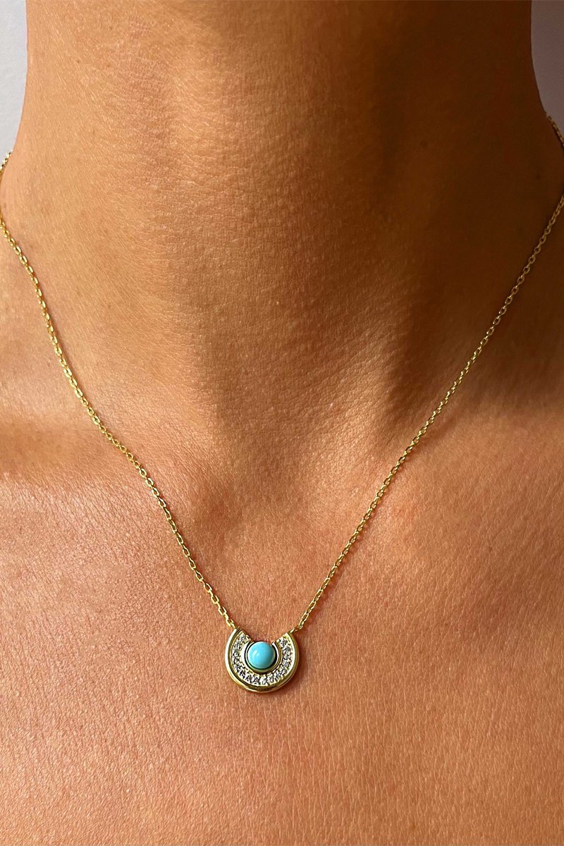 Collier avec pendentif en argent plaqué or jaune serti d'une turquoise synthétique.
