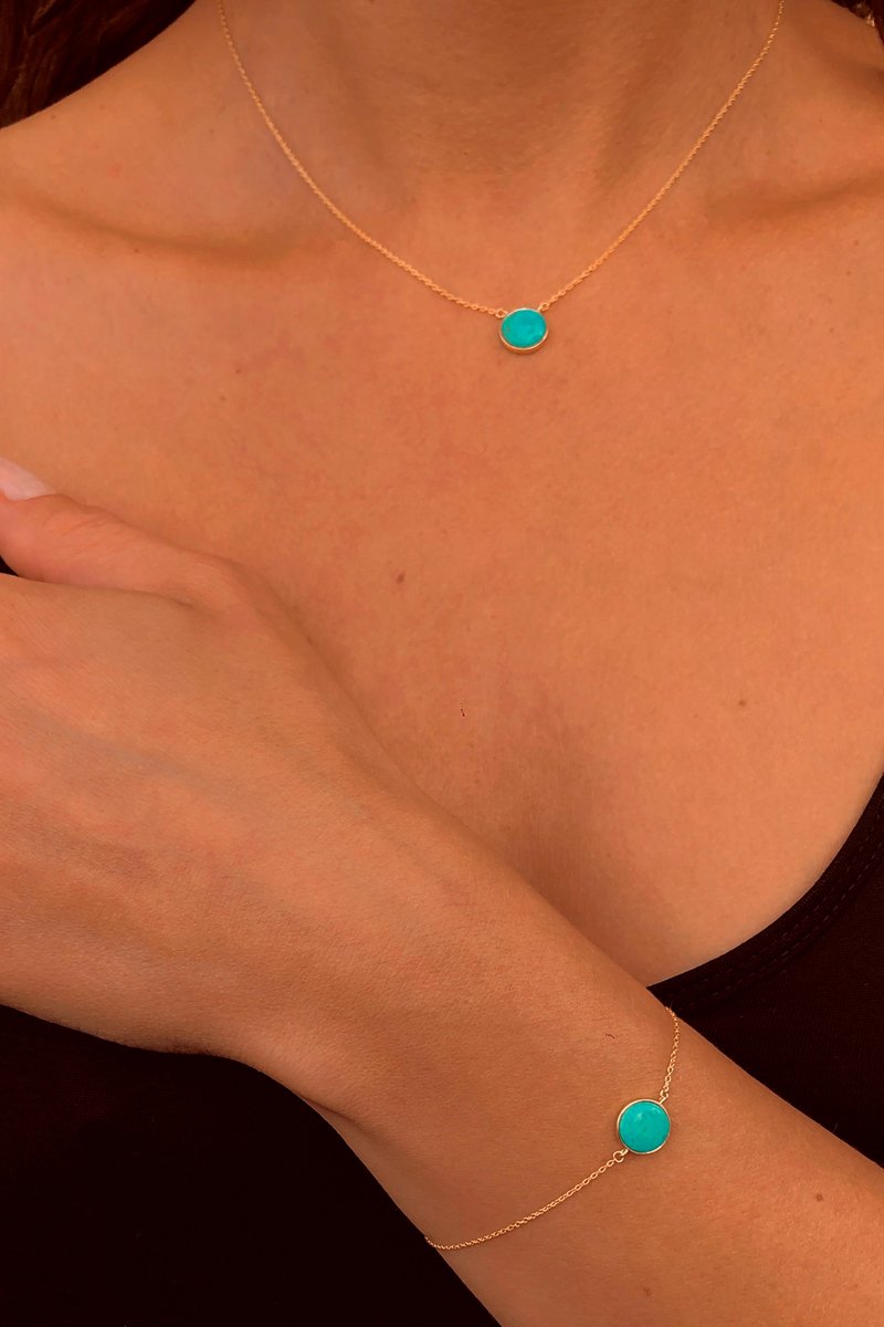 Collier en argent plaqué or jaune serti d'une amazonite.