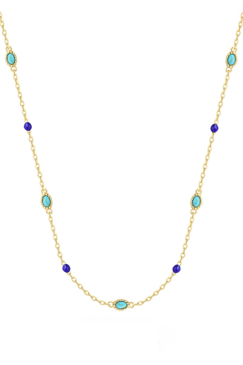 Collier en argent plaqué or jaune serti de turquoises synthétiques.
