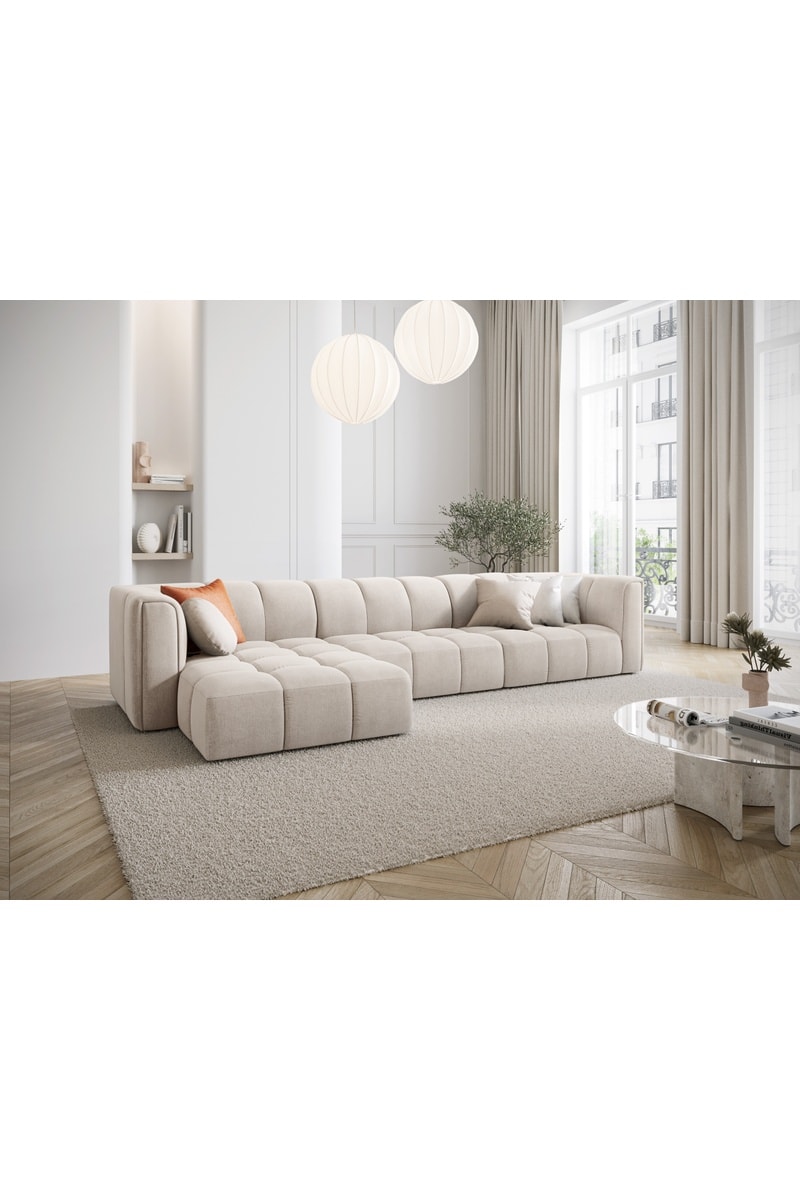 Canapé d’angle gauche modulaire Adams - Beige - 5 places - En tissu chenille