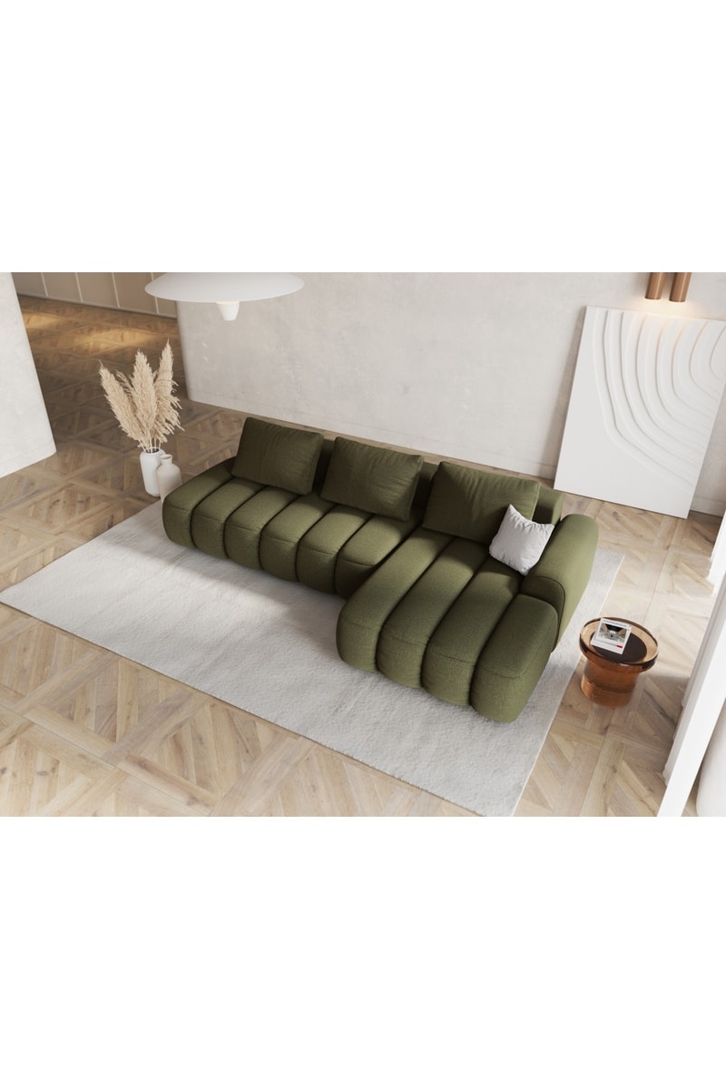 Canapé d'angle droit convertible Kimi - Vert - 4 places - En polyester