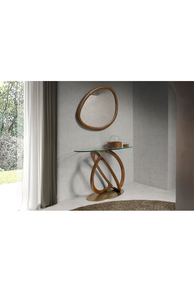Matière : acier inoxydable, verre trempé et noyer