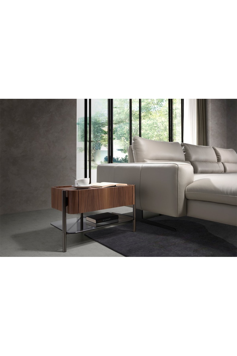 Table de chevet 1 tiroir en noyer - 65 x 39 x 39 cm