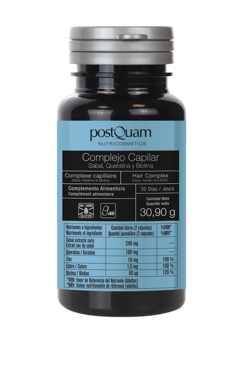 Ingrédients : Almidón de maíz, Sabal extracto seco (Serenoa repens, baya), Componentes de la cubierta de la cápsula (Hidroxipropilmetilcelulosa), Queratina (Queratina hidrolizada), Antiaglomerantes (Celulosa, Sales magnésicas de ácidos grasos, Silicato de magnesio, Dióxido de silicio), Zinc (Gluconato de cinc), Cobre (Gluconato cúprico), Biotina (D-biotina).