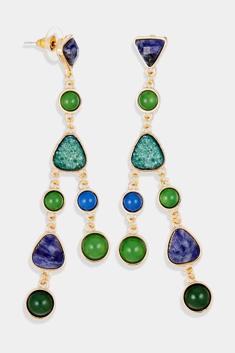 Boucles d'oreilles pendantes serties de zirconiums et de perles synthétiques.