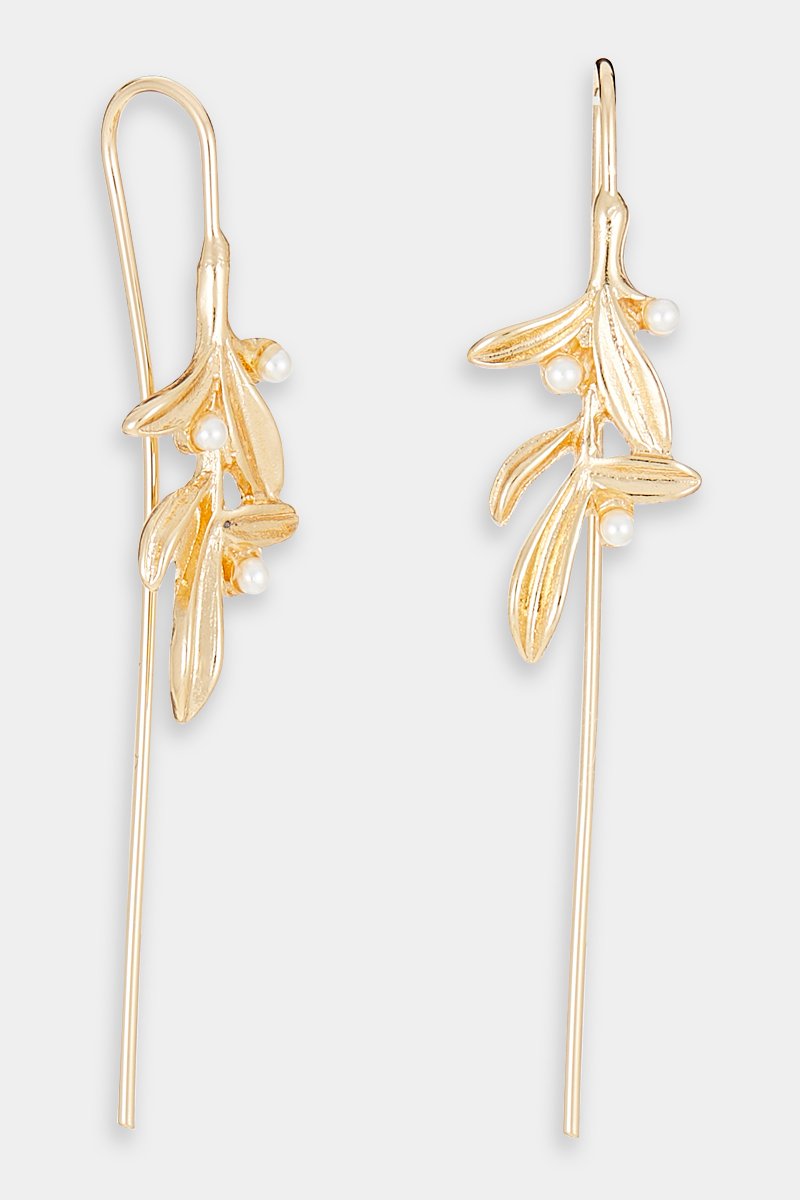 Boucles d'oreilles pendantes serties de perles synthétiques.