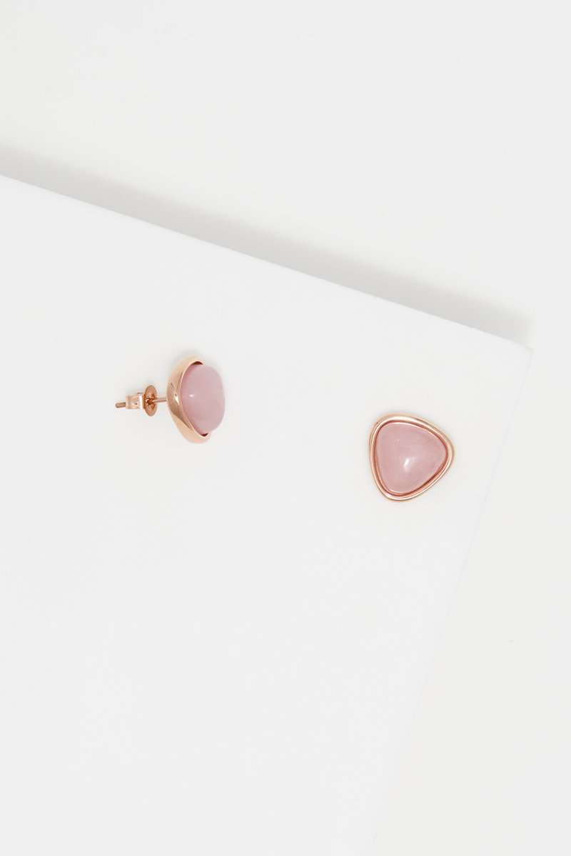 Puces serties d'un quartz rose.
