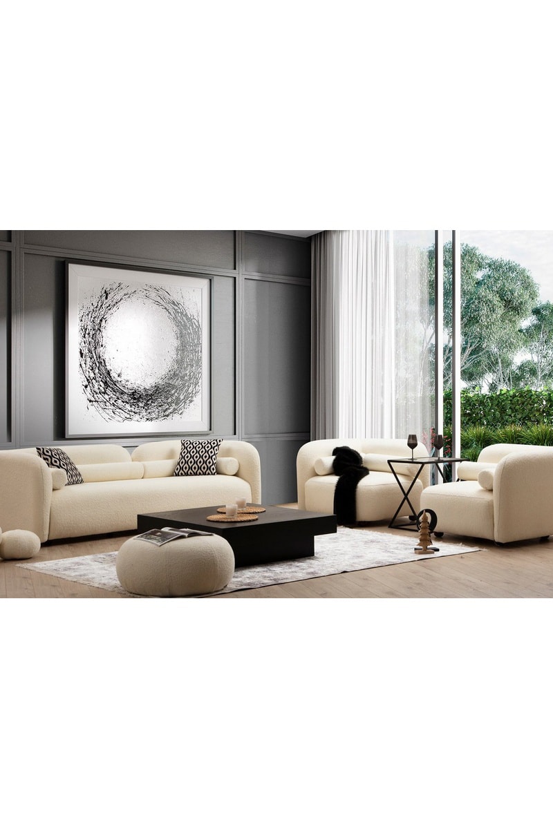 Canapé Victoria en hêtre - Crème - 2 places - Toucher tissu bouclette