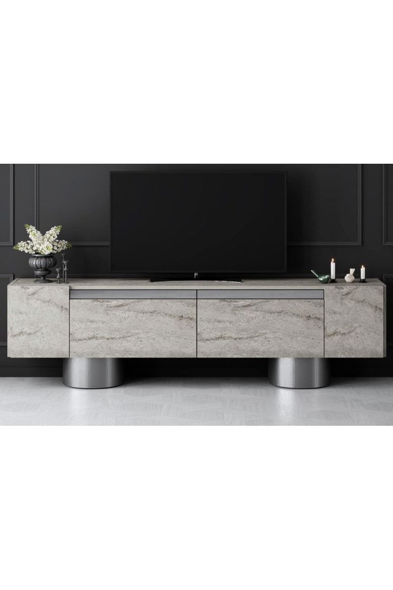 Meuble TV 2 abattants Bohem et argenté - 180 x 50 x 30 cm
