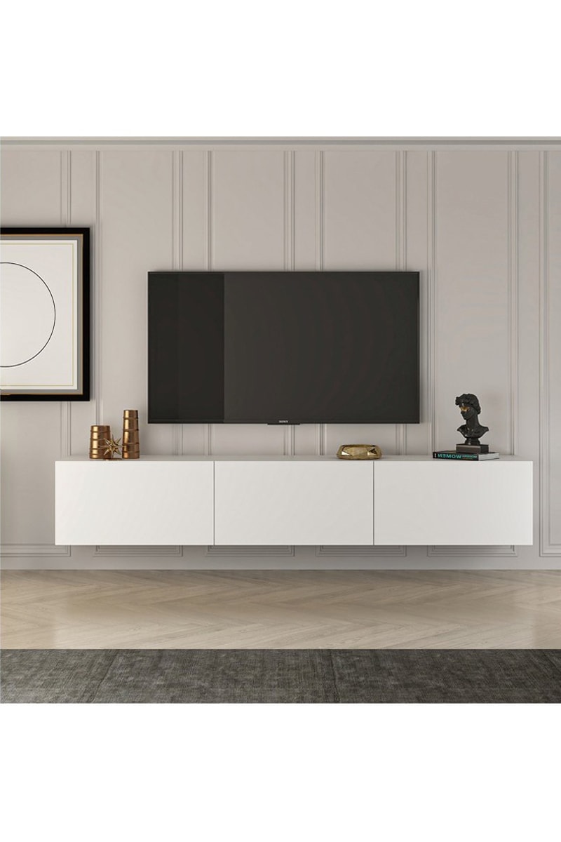 Meuble TV mural 3 abattants - 150 x 30 x 32 cm