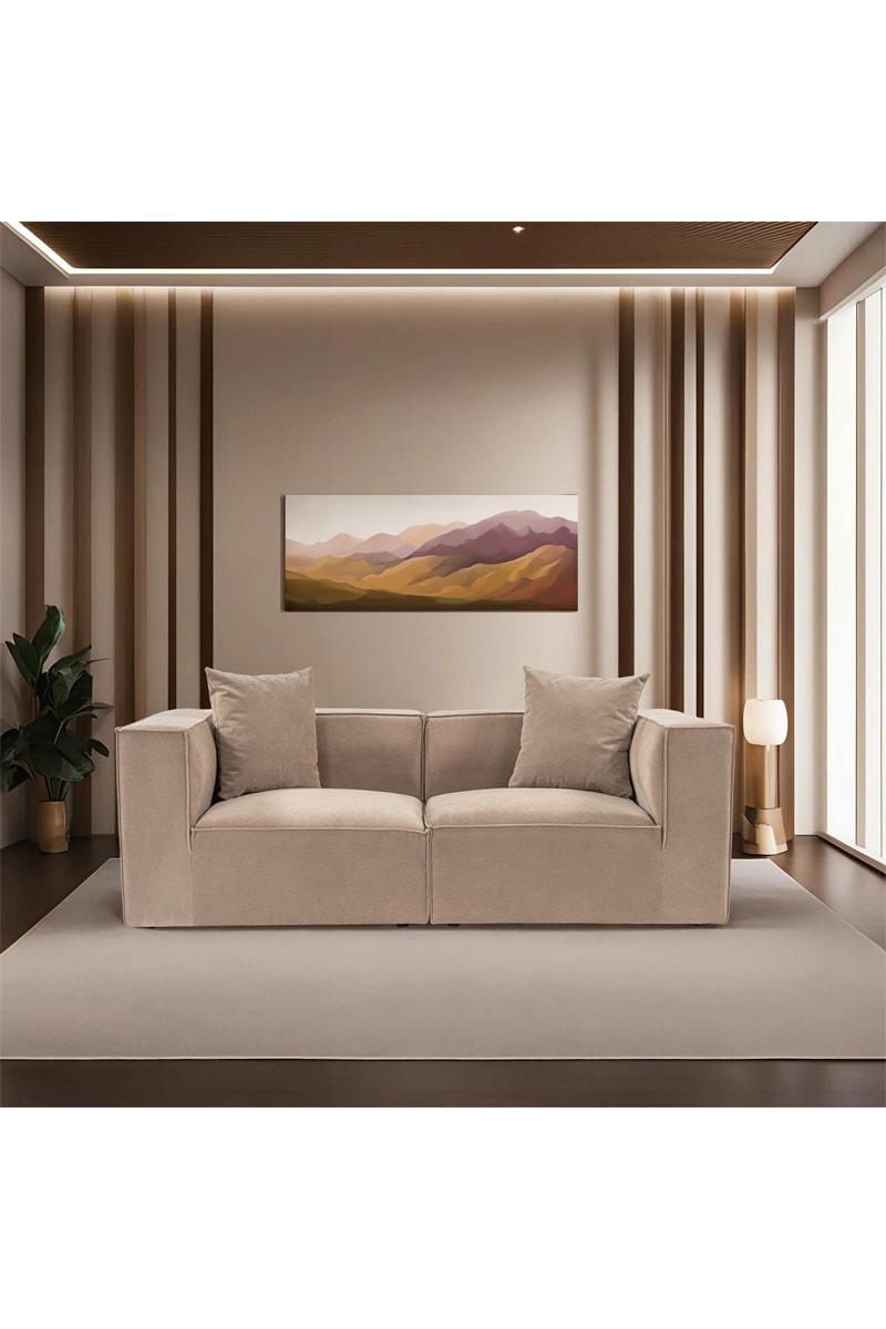 Canapé en bois de charme - Beige - 2 places - Revêtement lin