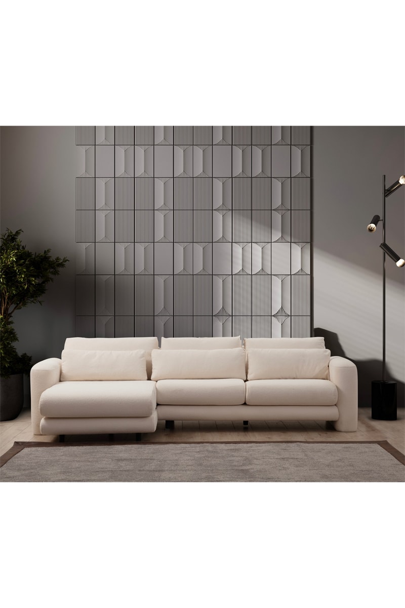 Canapé d'angle gauche - Crème - 3 à 5 places - Revêtement polyester