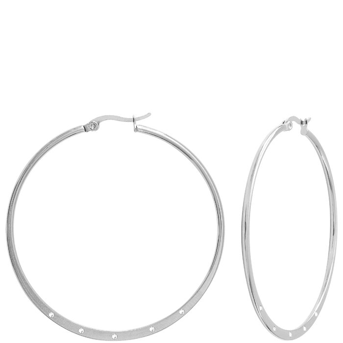 Créoles plates évasées - Acier & oxyde de zirconium - 50 mm