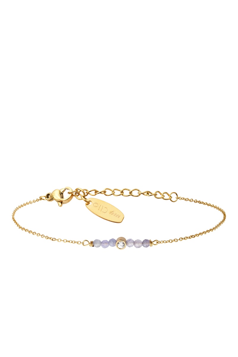 Bracelet en plaqué ion or jaune serti de 6 calcédoines et d'un oxyde de zirconium.