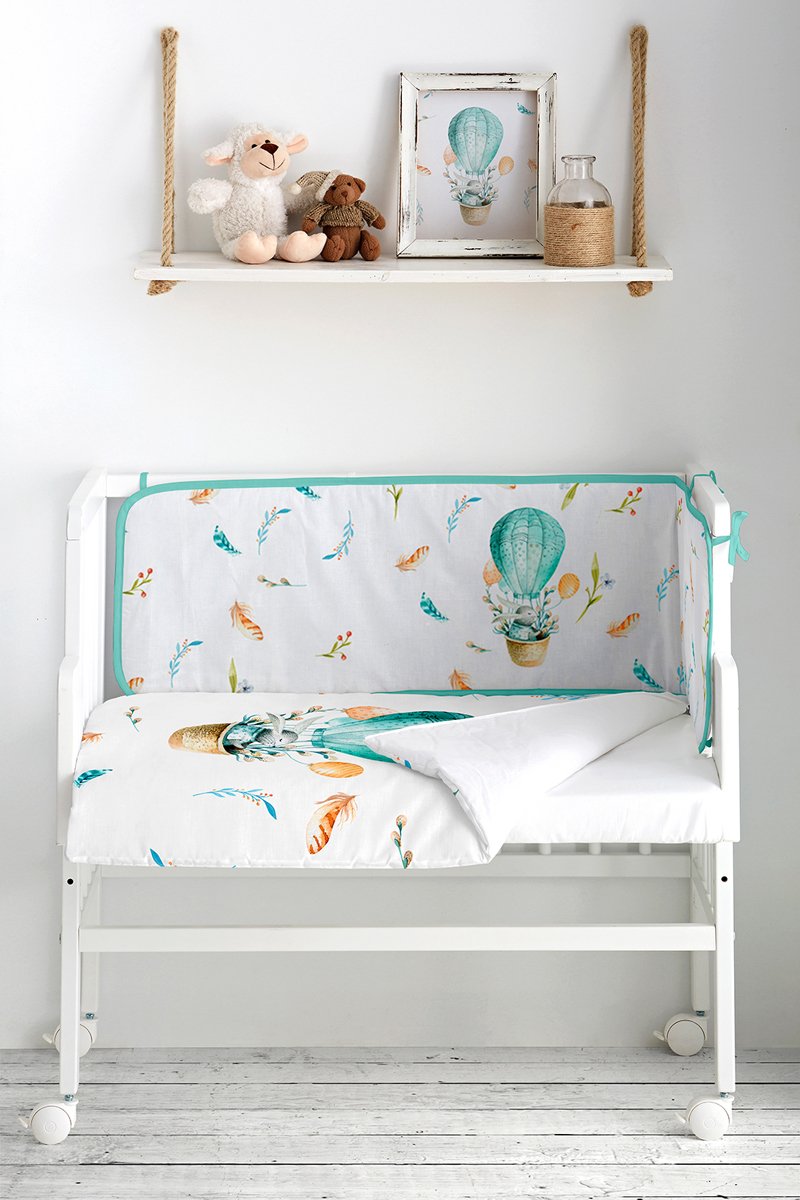 Mini berceau cododo en bois et parure Explorer Rabbit - Jusqu'à 10 mois - 4 pièces