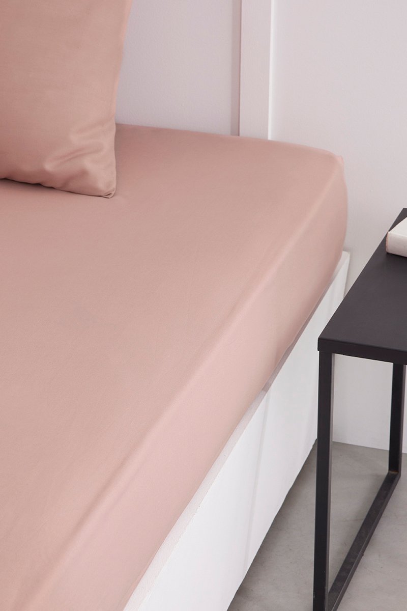 Drap-housse en coton 57 fils/cm² Essential - Rose des sables - Bonnet 23 cm