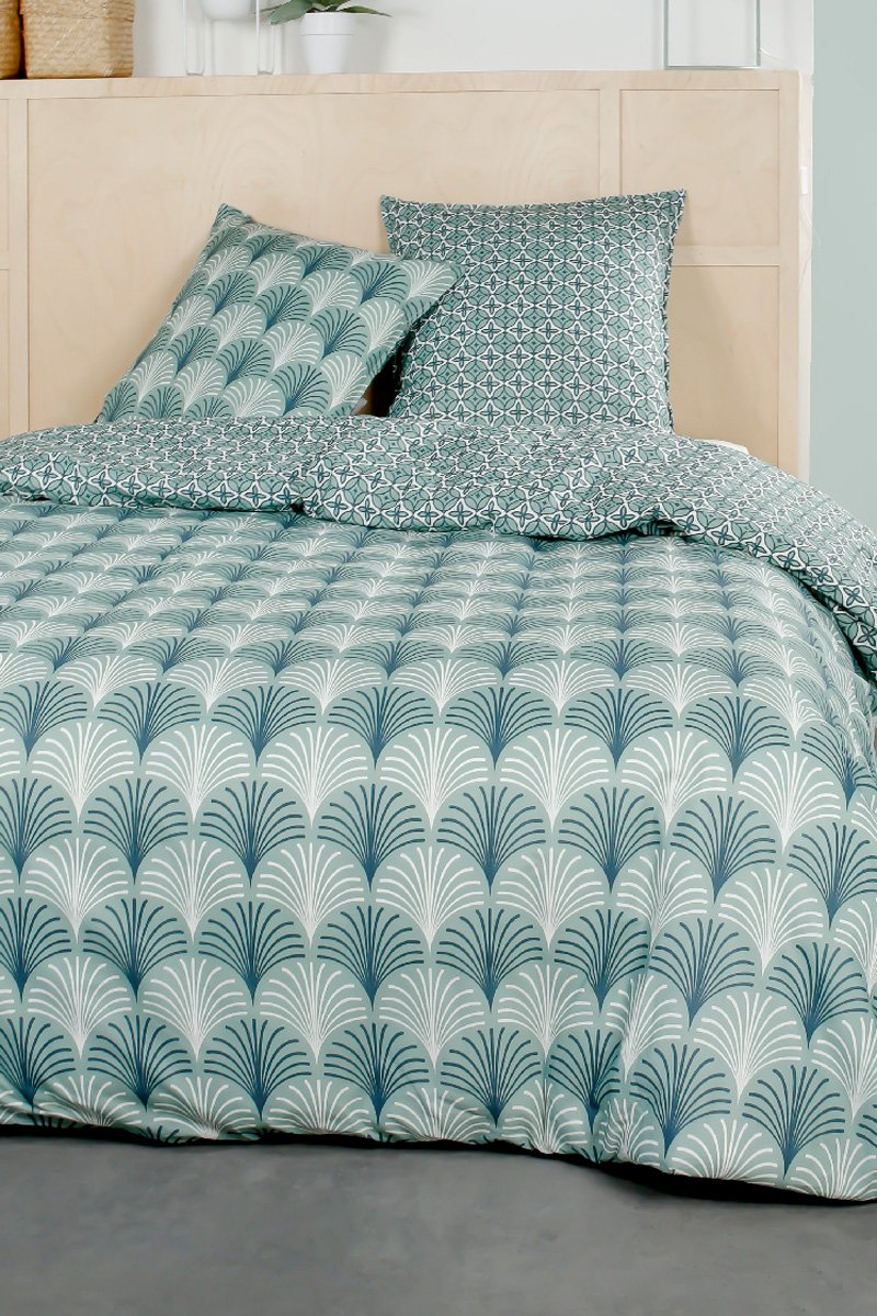 Parure de couette en coton Sunshine - Vert d'eau et bleu canard