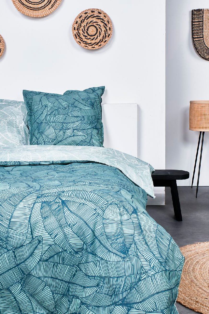 Parure de couette en coton 57 fils/cm² Kali - Bleu et blanc