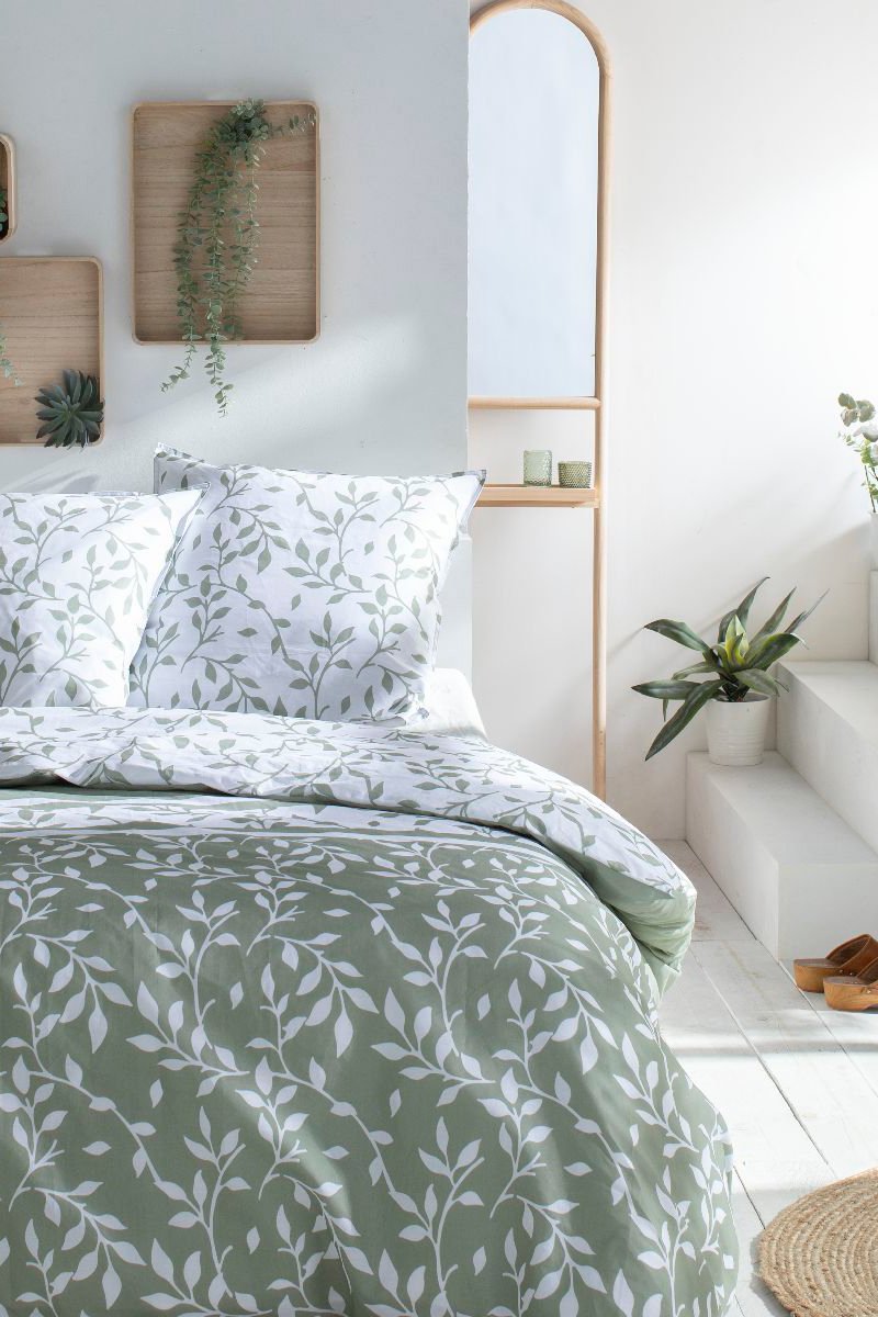Parure de couette en coton Flower Garden - Vert et blanc