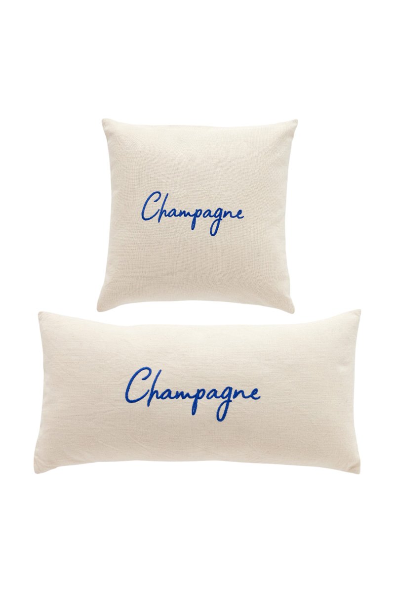 2 coussins - Ecru et bleu - 45 x 45 et 30 x 60 cm