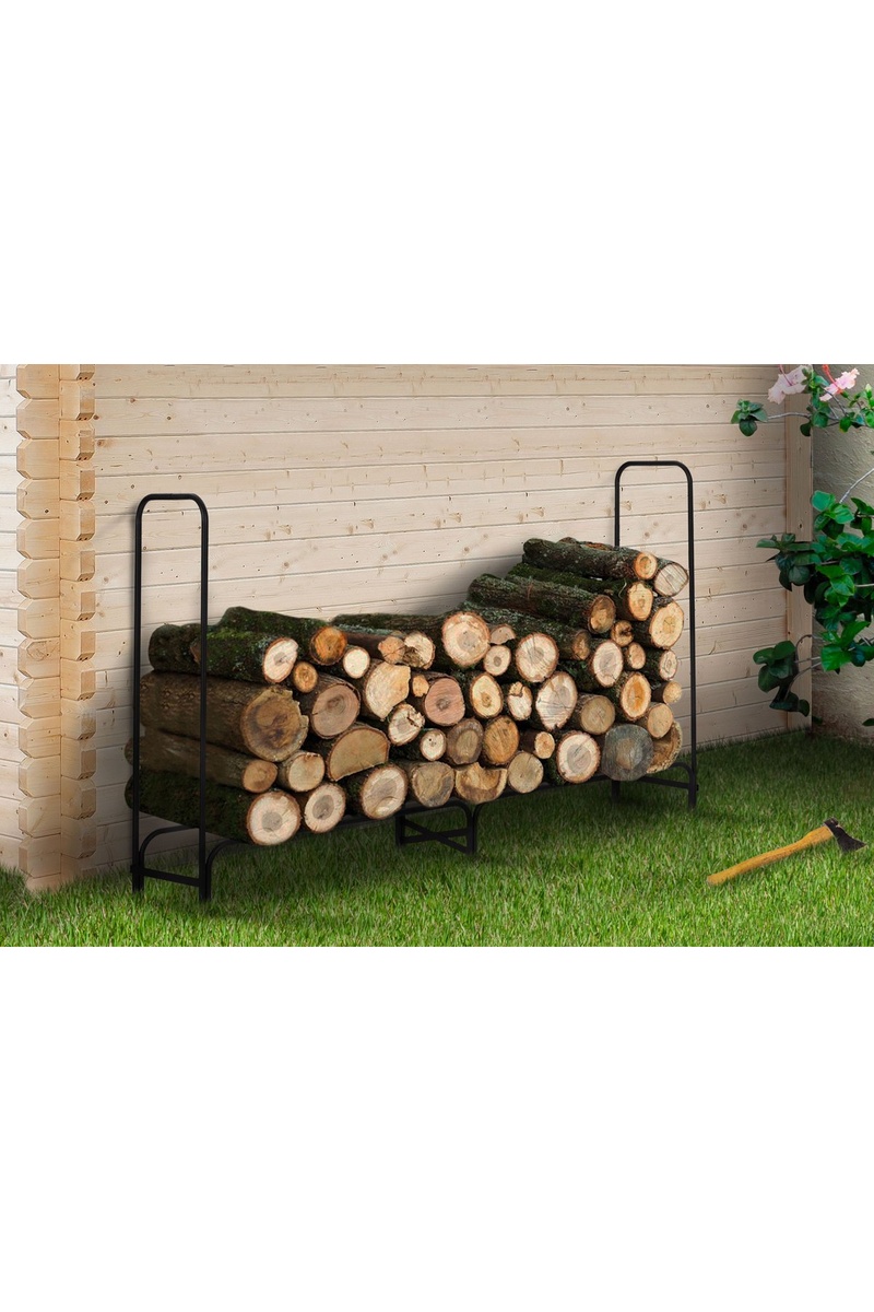 Le fait que ce serre-bûches soit surélevé permet d'isoler le bois de l'humidité du sol et ainsi de le faire sécher plus rapidement.
