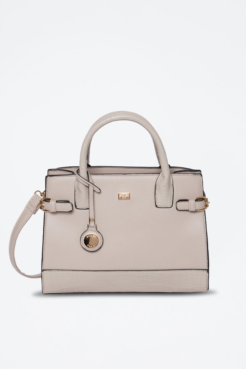Patte amovible, plaque avec logo et empiècement effet croco devant.
