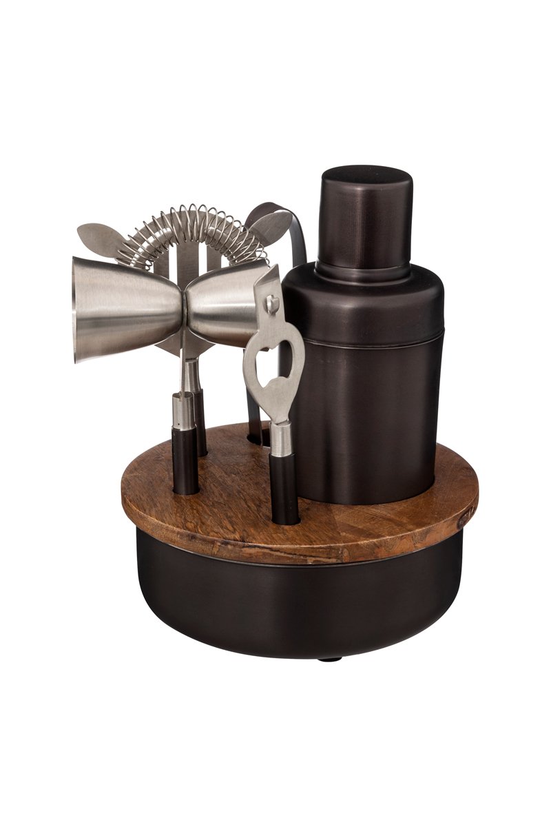 Coffret cocktail en manguier et acier inoxydable - 6 pièces
