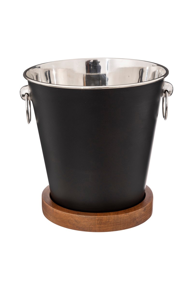 Seau à champagne en acier inoxydable et socle en manguier - 21 x 21 x 22 cm