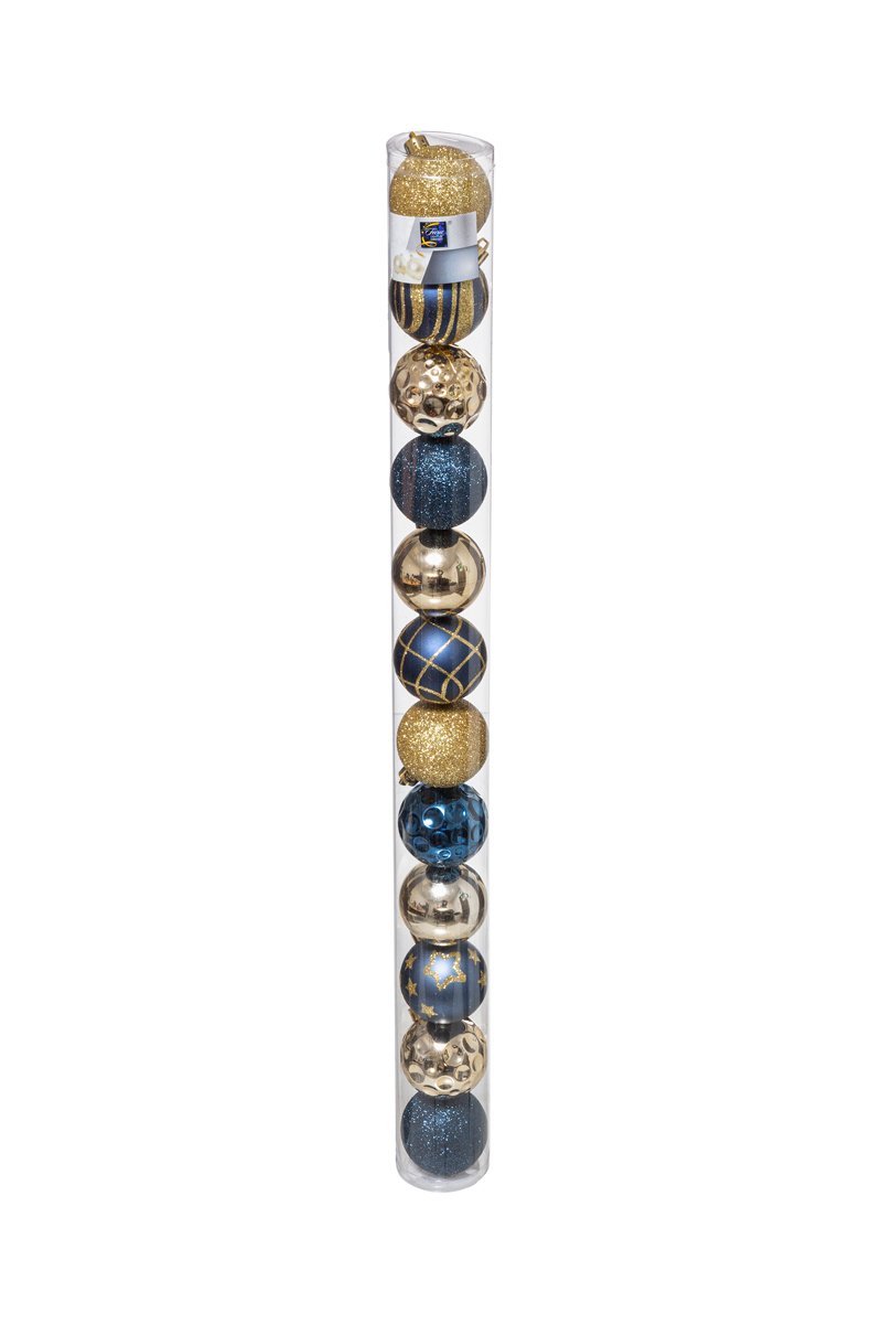 12 boules de Noël - Bleu et doré - 6 cm