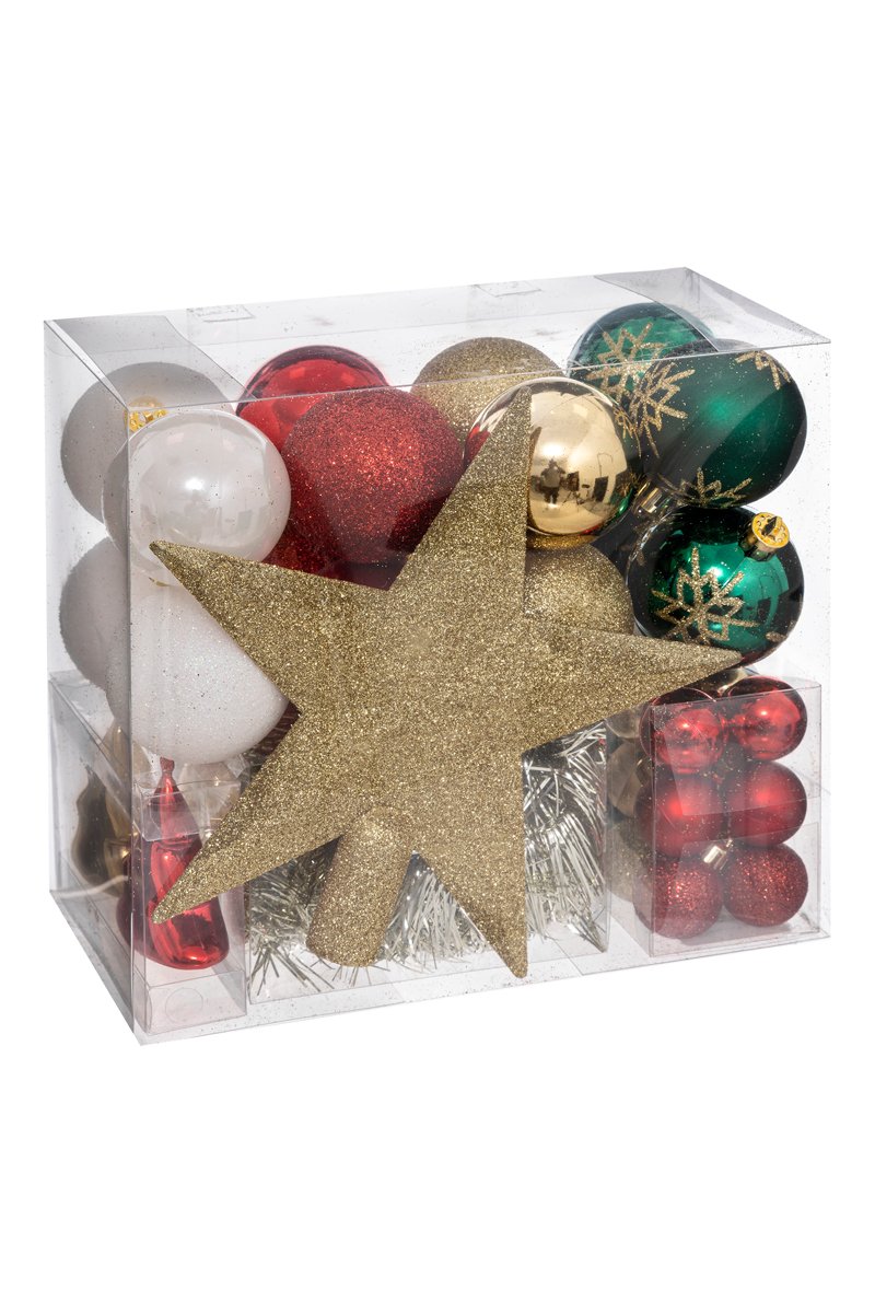 Avec ces décorations de Noël aux formats variés, ces guirlandes et ce cimier scintillant, ce kit fera de votre sapin le roi des fêtes pour cet hiver.