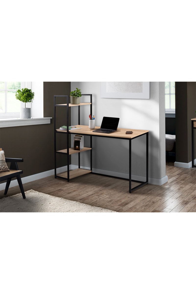Bureau bibliothèque Memphis - Imitation bois et noir