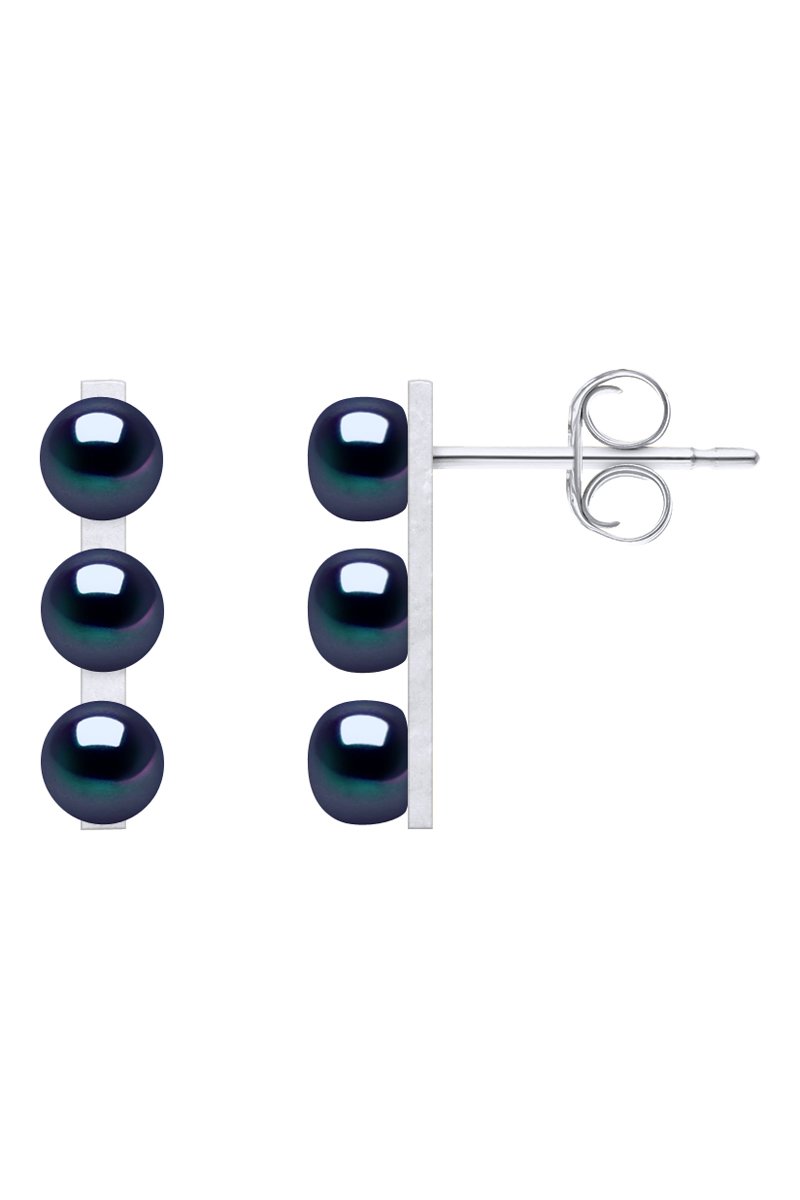 Boucles d’oreilles en argent serties de 3 perles de culture d’eau douce.