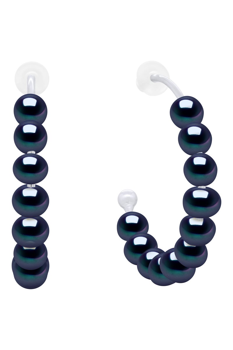Demi-créoles en argent serties de 11 perles de culture d’eau douce.