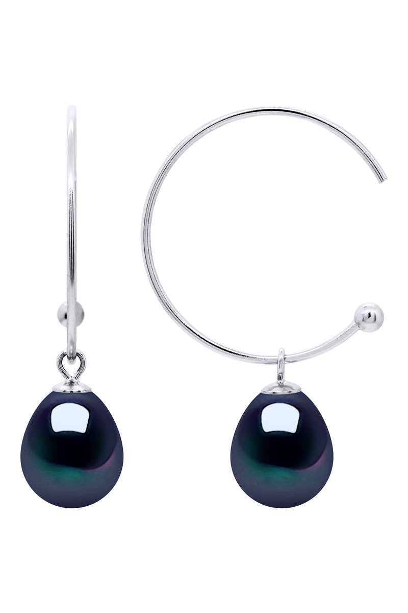 Demi-créoles en argent serties d'une perle de culture d’eau douce.
