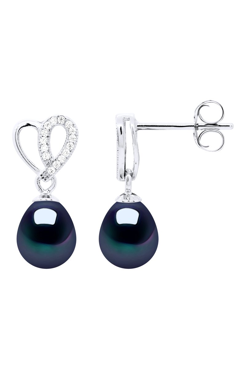 Boucles d’oreilles en argent serties d’une perle de culture d’eau douce et d'oxydes de zirconium.