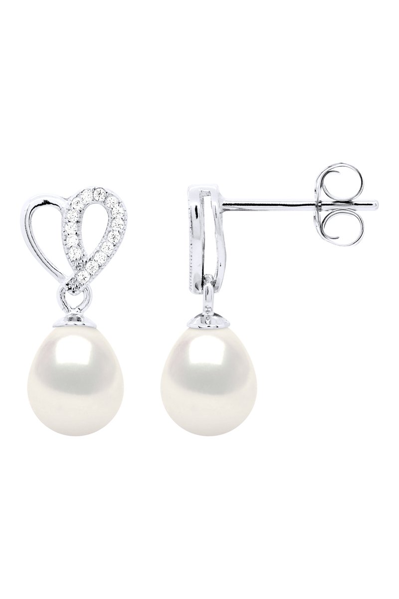 Boucles d’oreilles en argent serties d’une perle de culture d’eau douce et d'oxydes de zirconium.