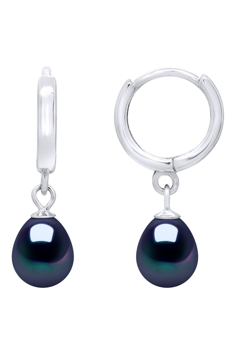 Créoles en argent serties d’une perle de culture d’eau douce.