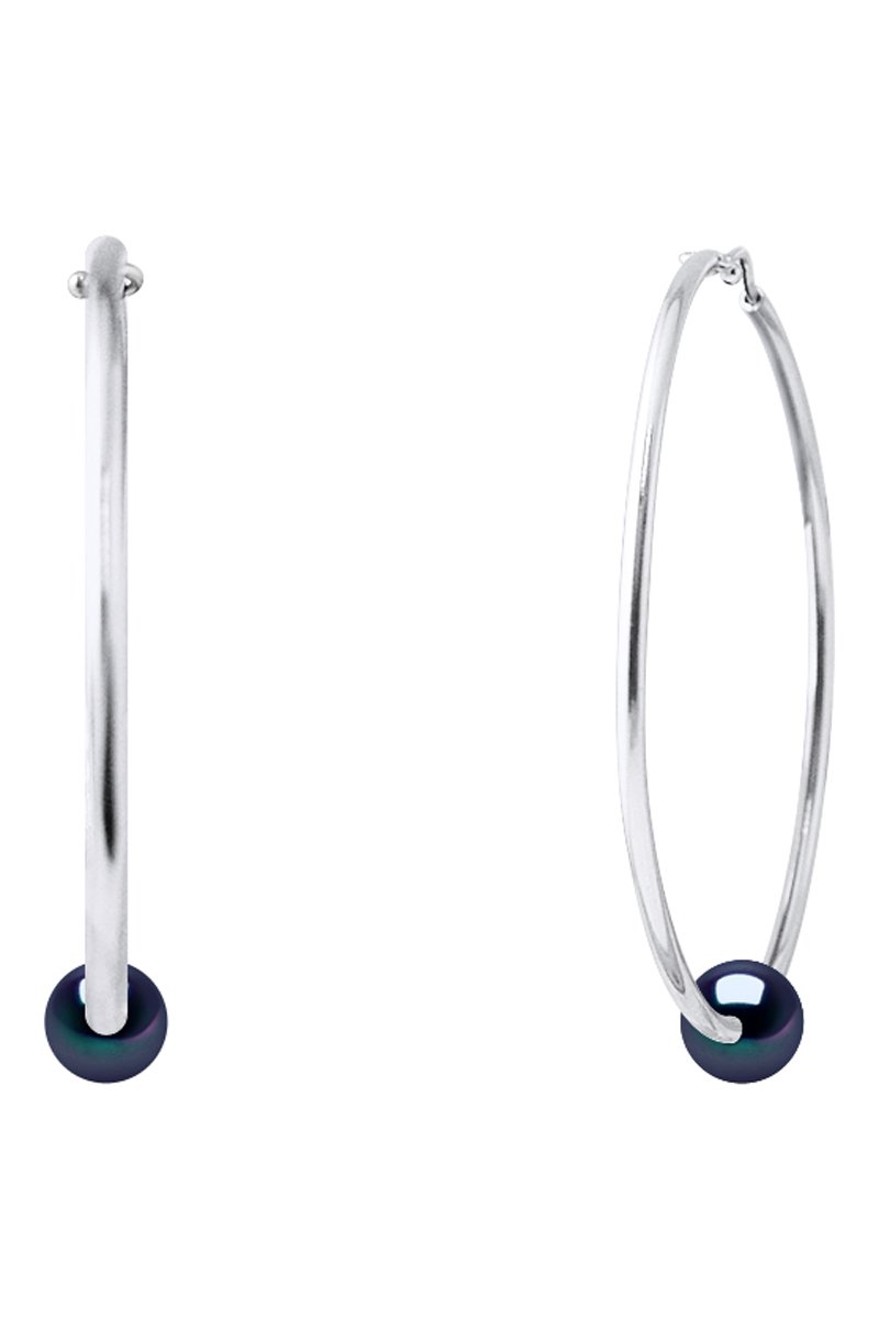 Créoles en argent serties d'une perle de culture d’eau douce.