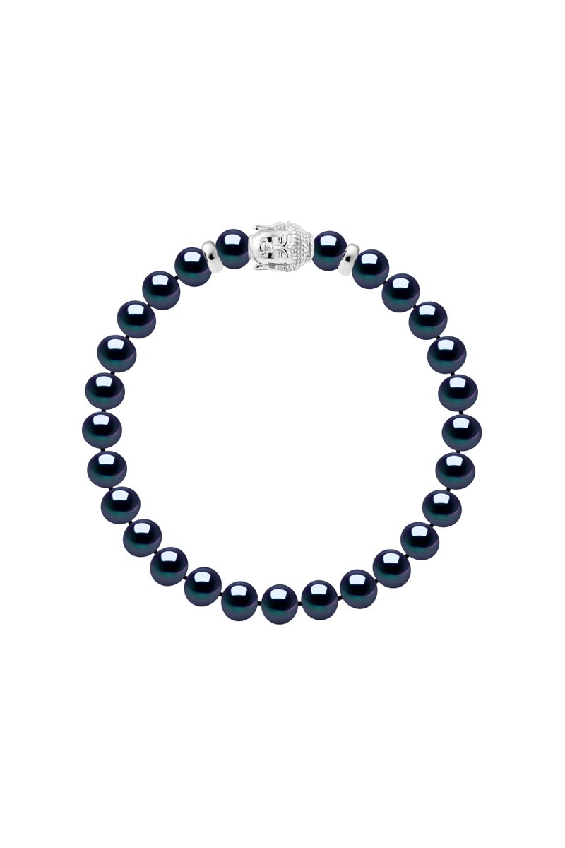 Bracelet élastique en perles de culture d’eau douce et argent.