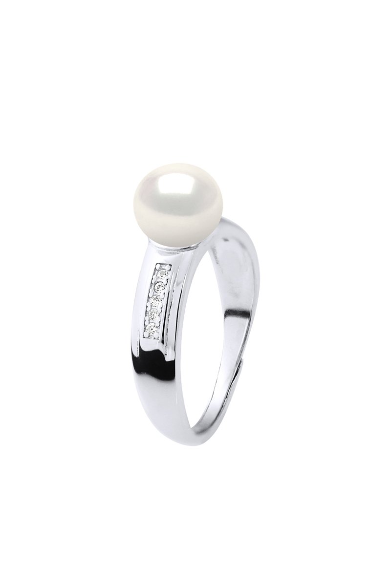 Bague réglable en argent sertie d’une perle de culture d’eau douce et d’oxydes de zirconium.
