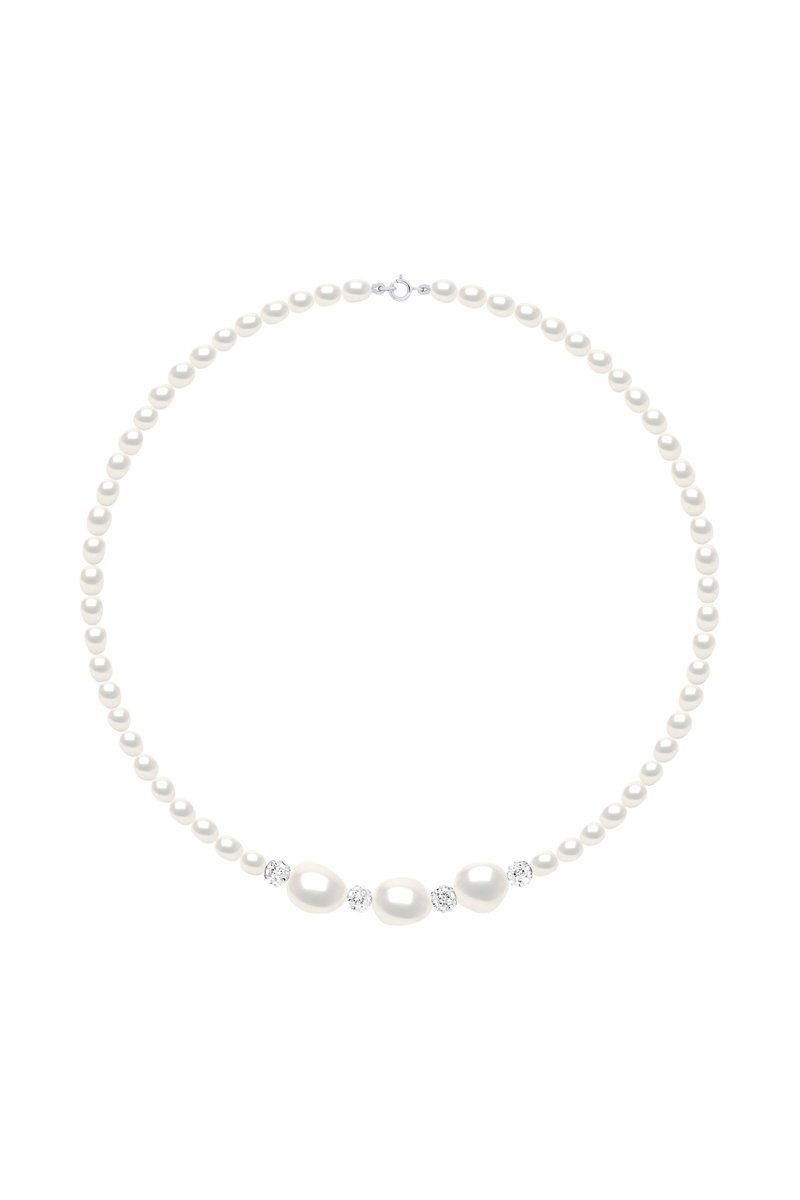 Collier en argent et perles de culture d’eau douce serti de cristaux.