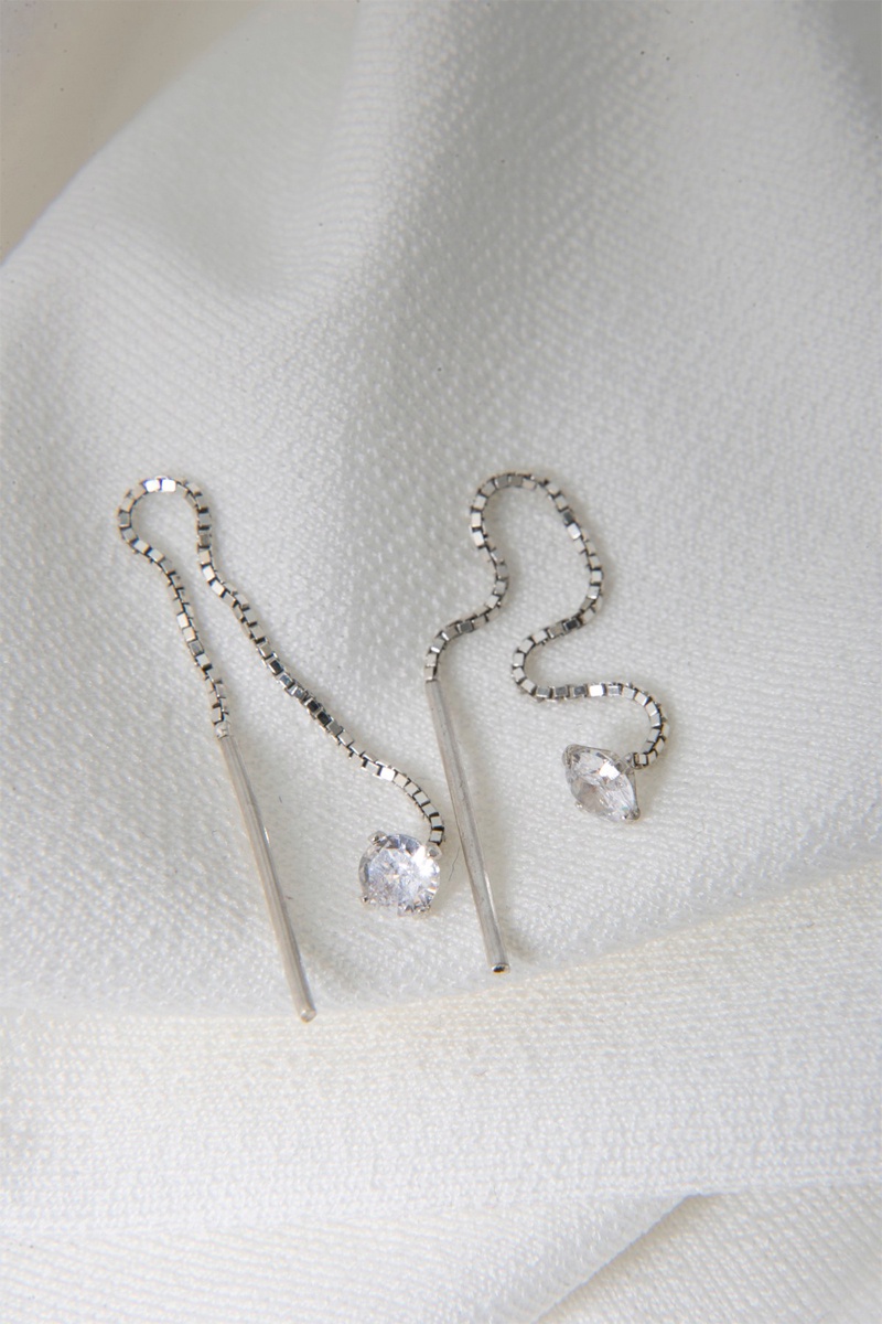 Boucles d'oreilles pendantes en argent serties de zircons.