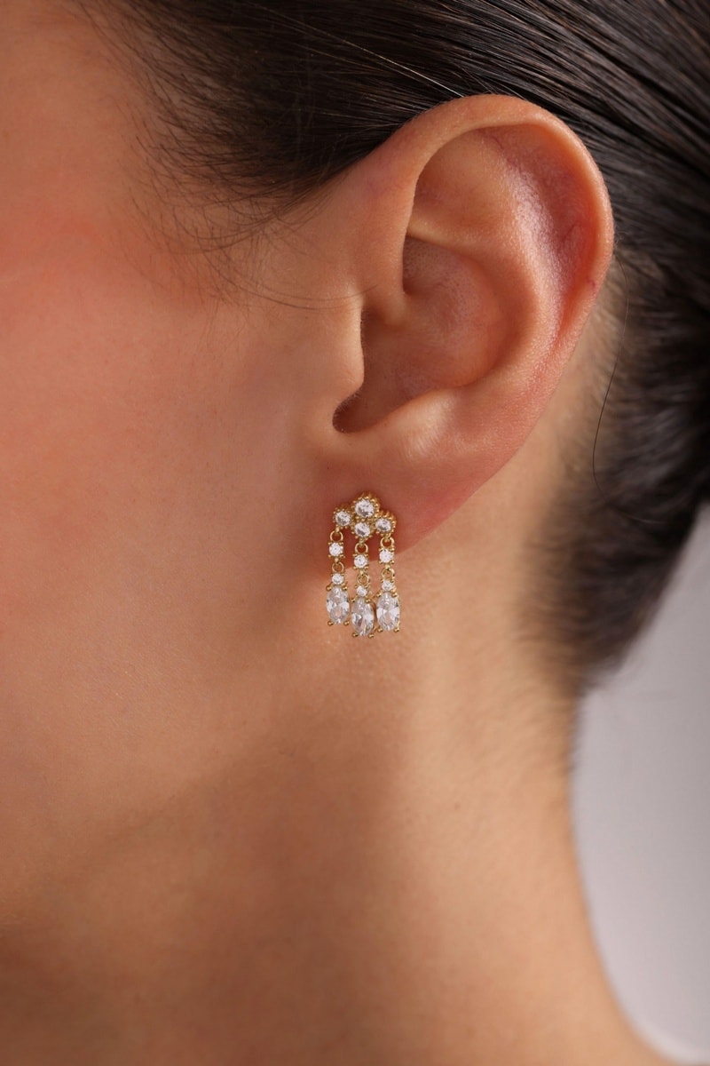 Boucles d'oreilles en argent plaqué or jaune sertis de cristaux.